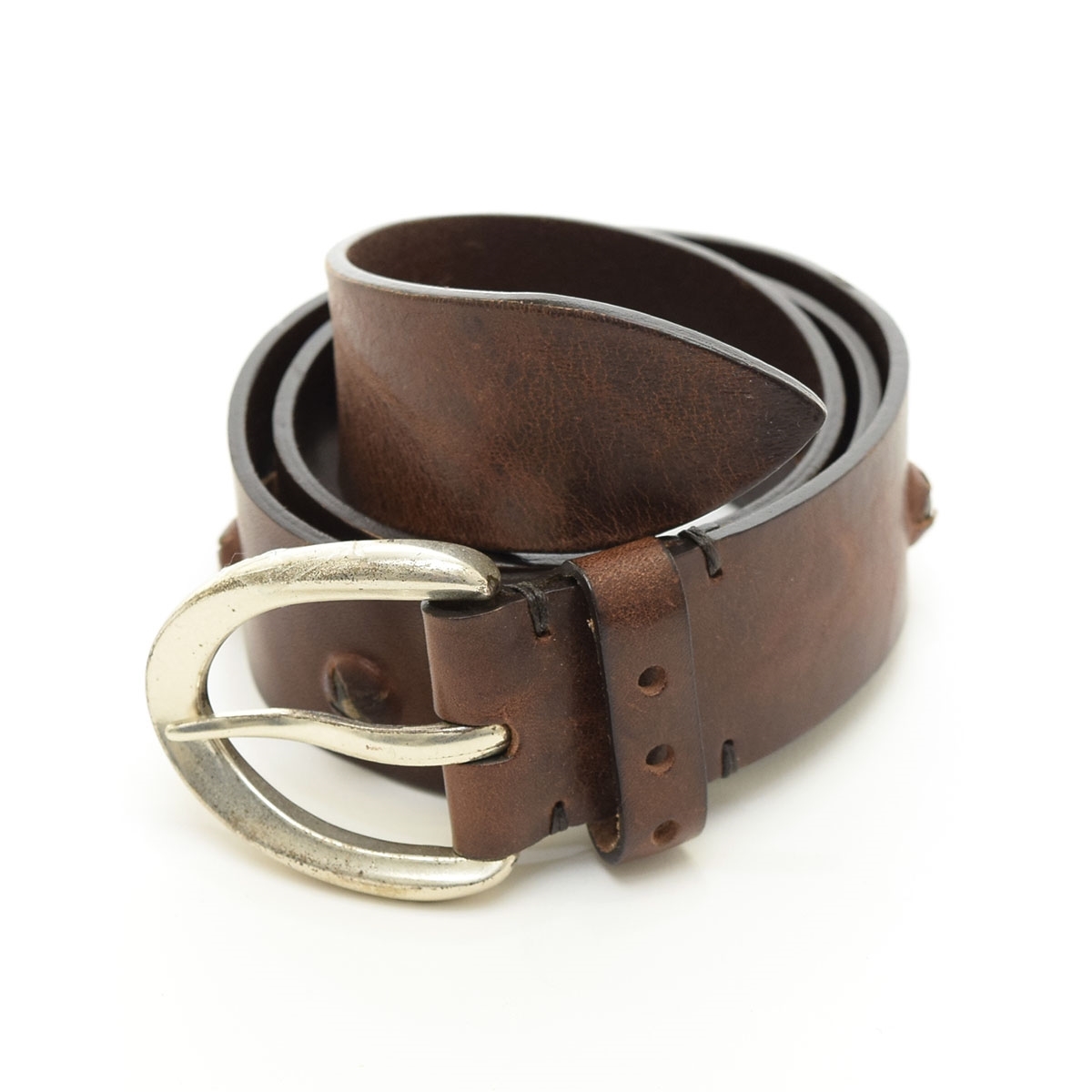 > ●520649 POST&CO ポストアンドコー ●レザーベルト 埋め込みスタッズ サイズ80 メンズ イタリア製 ブラウン