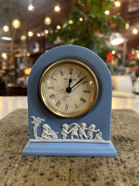> 【ecorio/エコリオ】ヴィンテージ WEDGWOOD ウェッジウッド ジャスパーウェア ペールブルー マントルクロック 時計