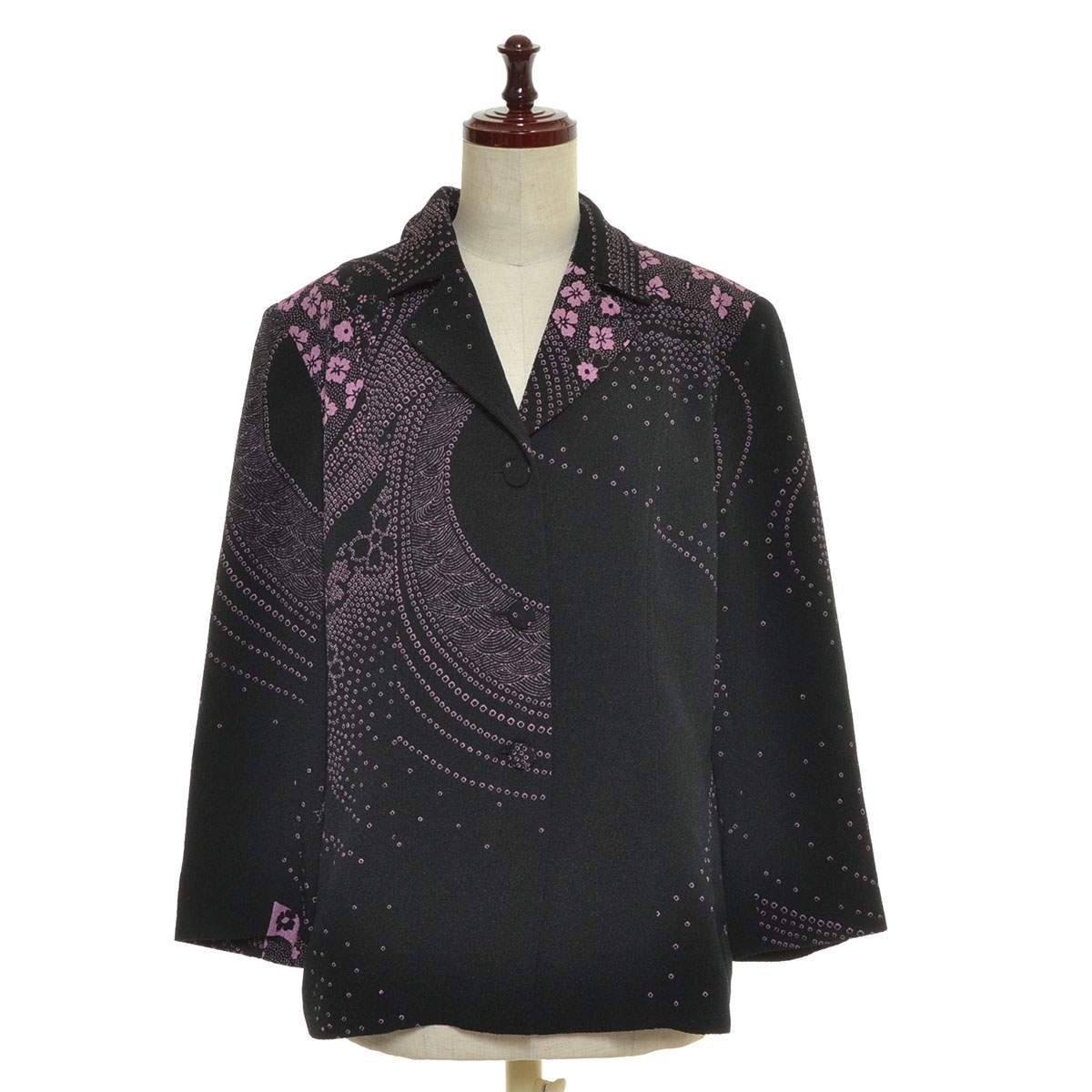 - □494103 MOMIJI ○ジャケット さくら桜花柄 テーラードジャケット レディース 日本製 ブラック