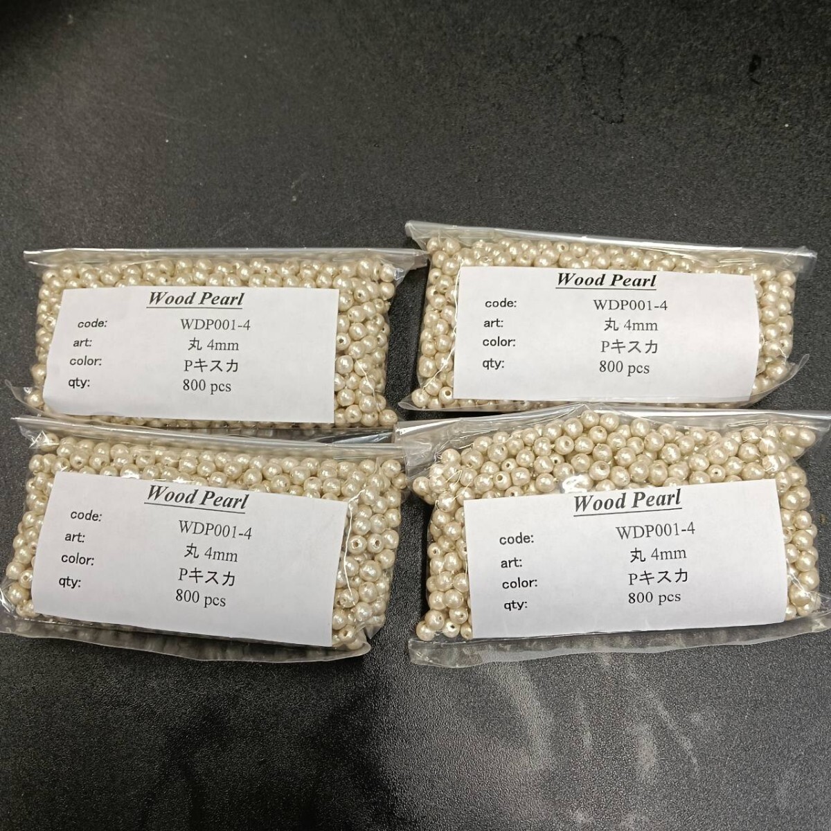 > ☆未使用 約3100個 大量 ウッドパール ビーズ ラウンド 4mm Pキスカ シャンパンゴールド ヴィンテージ ハンドメイド ネックレス S-345