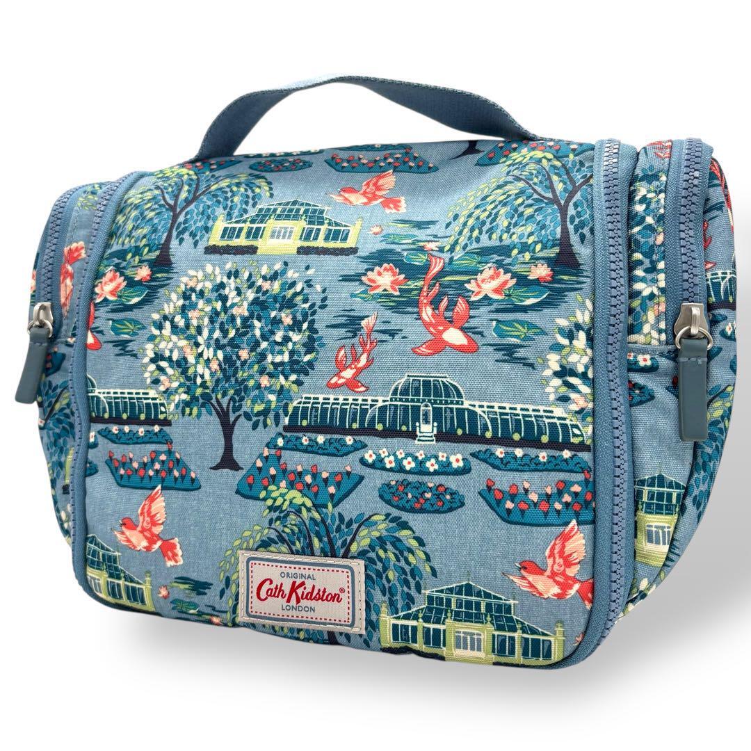 - 未使用級 キャスキッドソン ポーチ 小物収納 ブルー系 コットン ハンドバッグ