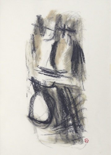 - 【真作】横手由男 水墨画 「頬寄せる人」 雨情縁(うじょうゆかり)・「雨さん」の通称で知られた放浪画家【信頼と実績の正光画廊】