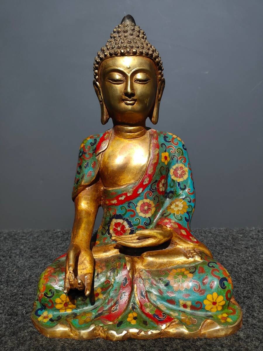 - 蔵友旧蔵出 銅製 塗金 景泰藍 琺瑯彩 釋迦牟尼像 希少珍品 貴重品 置物 古賞物 密宗密教 供養品 仏教美術品
