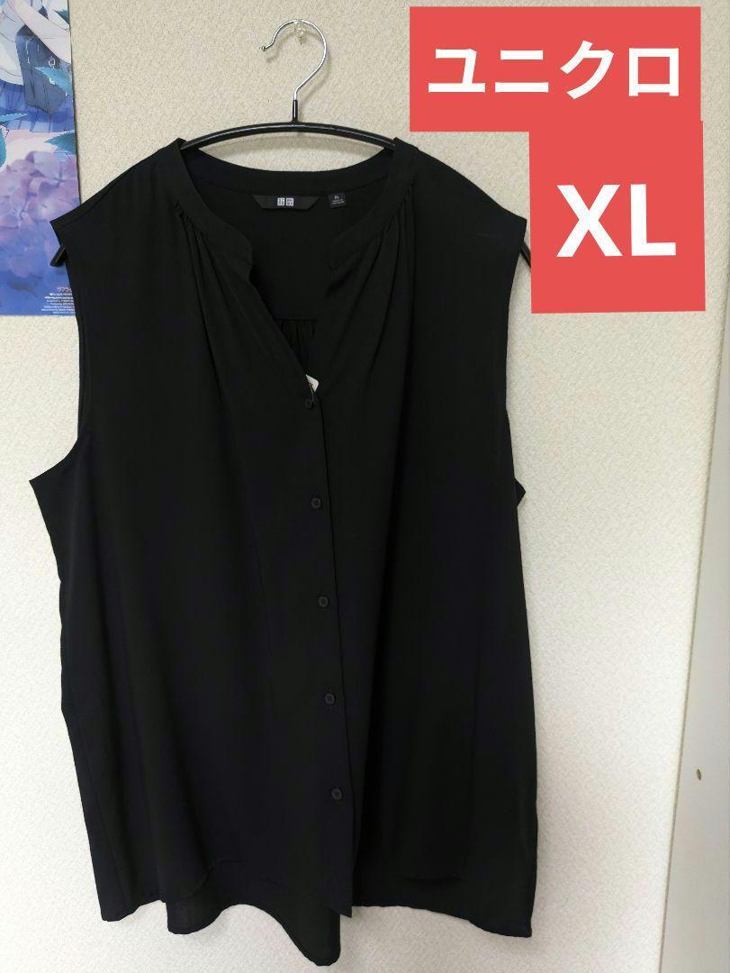 - 【新品】ユニクロ レーヨンブラウス ノースリーブ XL ブラック