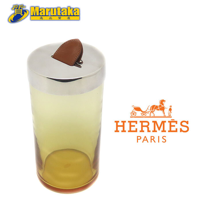 - 【エルメス】マルチケース レザークリップ グラデーション ガラス 円柱 インテリア 小物入れ 貯金箱 キャンドル型 HERMES 中古 20-146-30