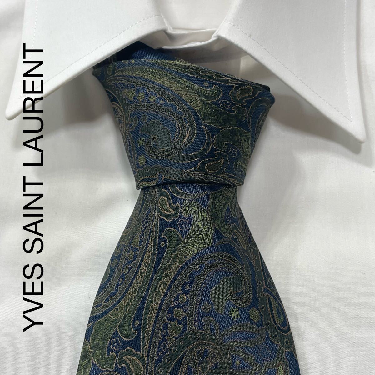 > YVES SAINT LAURENT イヴサンローラン ストライプ ペイズリー ジャガード シルク ネクタイ ネイビー カーキ TG2532