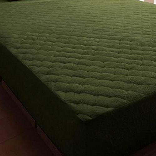 > 未使用訳あり ざぶざぶ洗えるコットンタオルの敷パット一体ボックスシーツ ファミリーサイズ モスグリーン