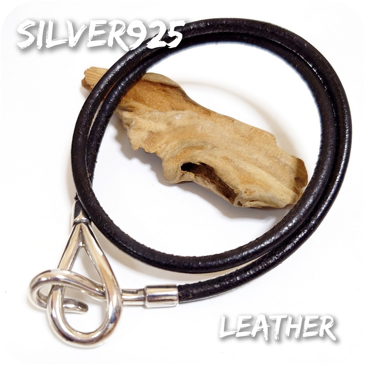 > 6334 SILVER925★訳あり★2連フックレザーブレスレット シルバー925 シンプル チョーカー アンクレット ヴィンテージ 丸紐レザーコード本革