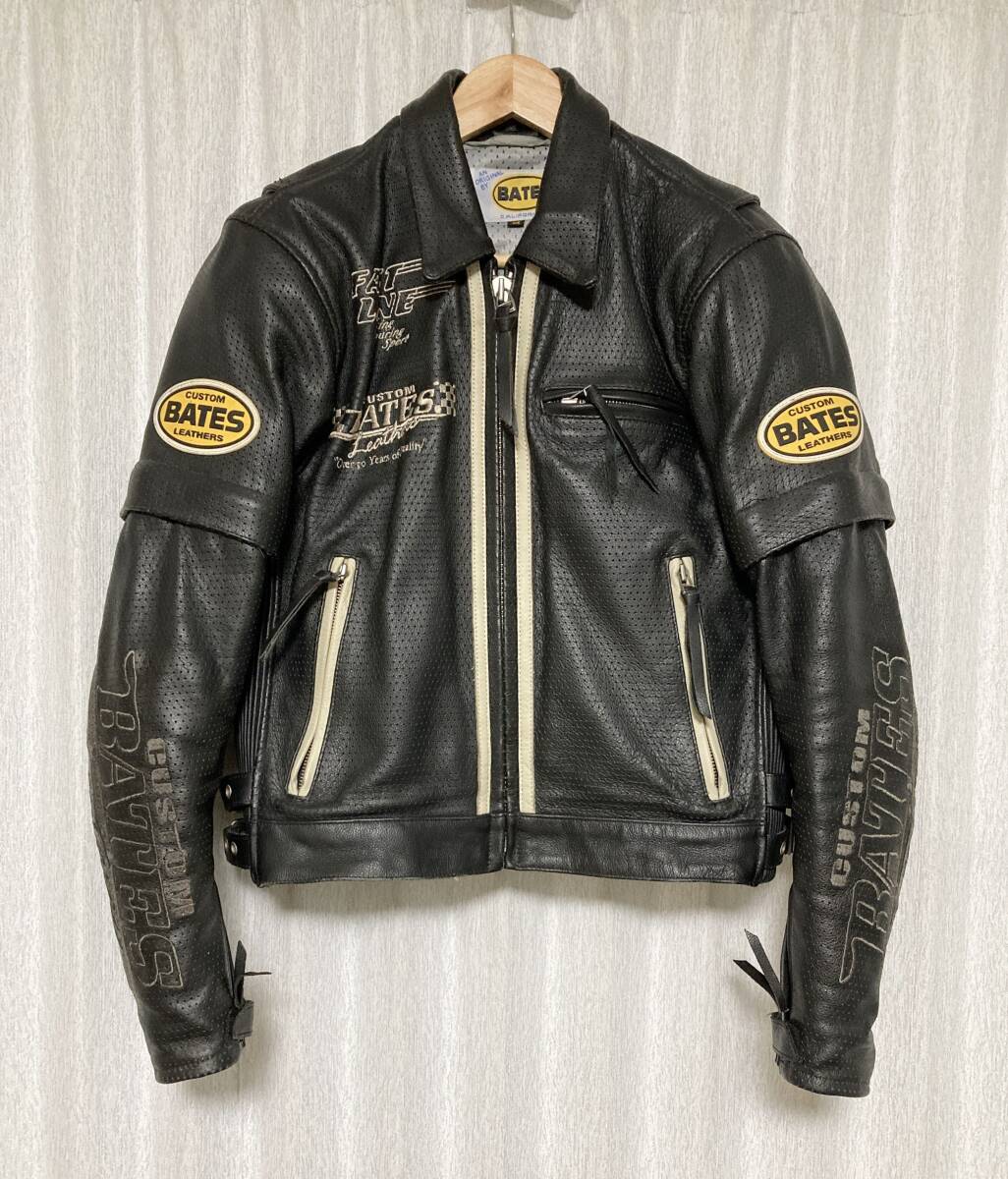 - 本革☆[BATES] 2WAY パンチングレザージャケット バイカーライダース M 本革 3点パッド ブラック 裏地メッシュ ベイツ
