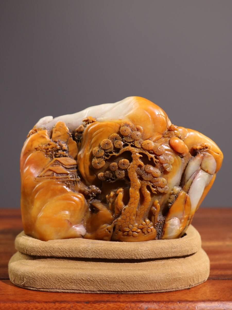 - 『館蔵珍品 寿山石 田黄石 細密彫 攜童訪友紋印章 印章 印鑒』文房具 書道品 貴重物品 収蔵品 中国古美術 時代物 古董品