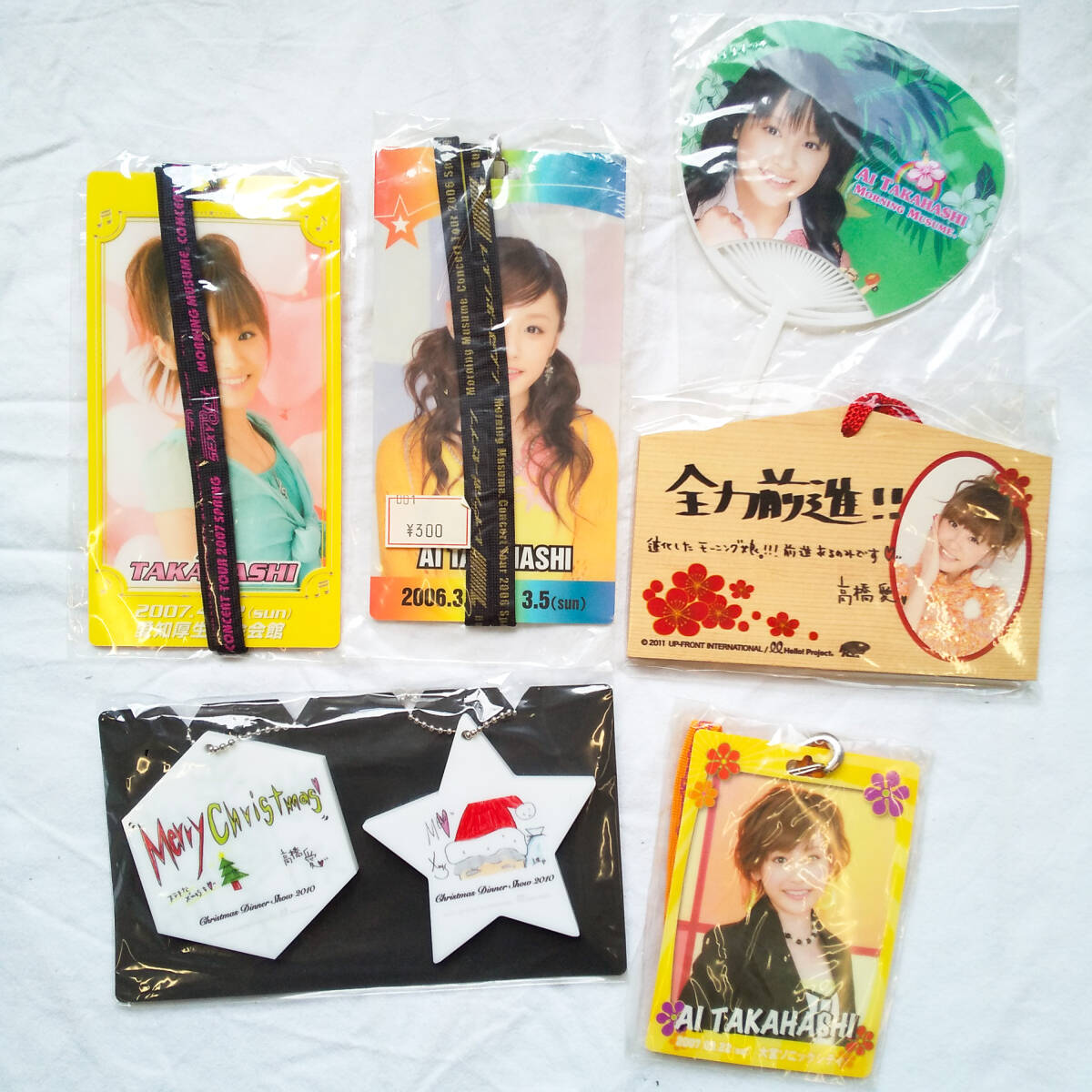 - [未開封] モーニング娘。 高橋愛 グッズ8点セット ストラップ 首掛けストラップ キーホルダー 絵馬 うちわ 他 _雑貨