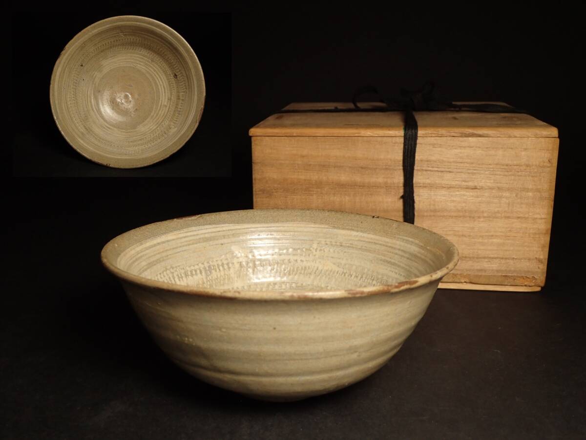 > S242 李朝 三島 縄簾文鉢 象嵌 茶碗 朝鮮 李朝 刷毛目 粉引 三島 粉青沙器 18.0cmX8.0cm