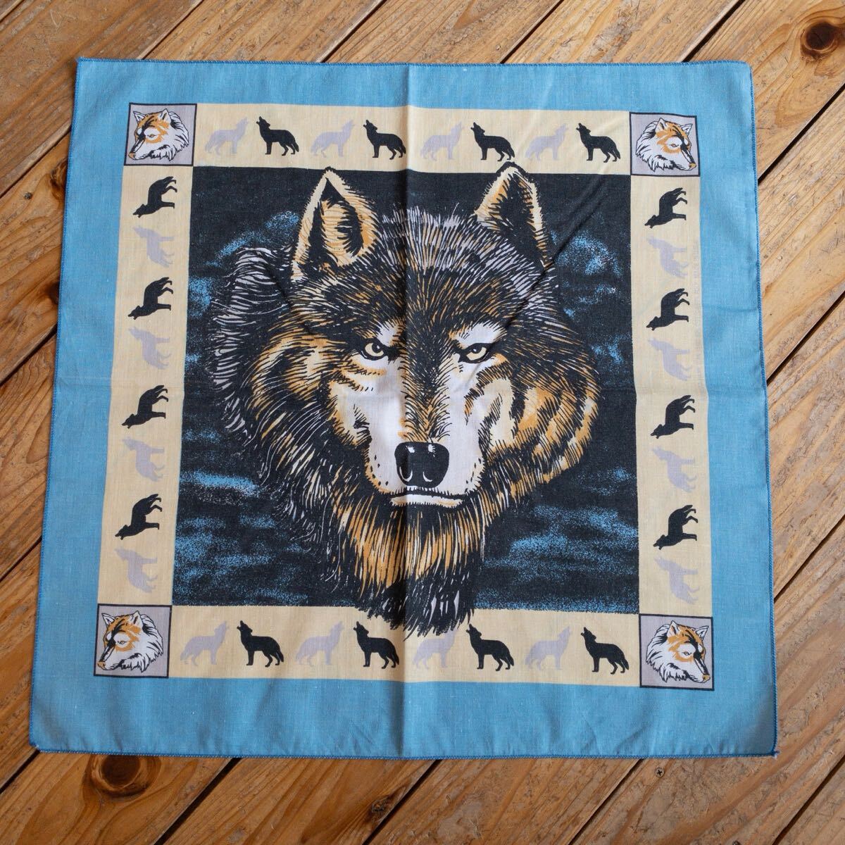 > 送料無料 Vintage バンダナ ハンカチ オオカミ 狼 アメリカ仕入れ 動物 ブルー ファッションコーデ 小物 雑貨 ヴィンテージ A1623