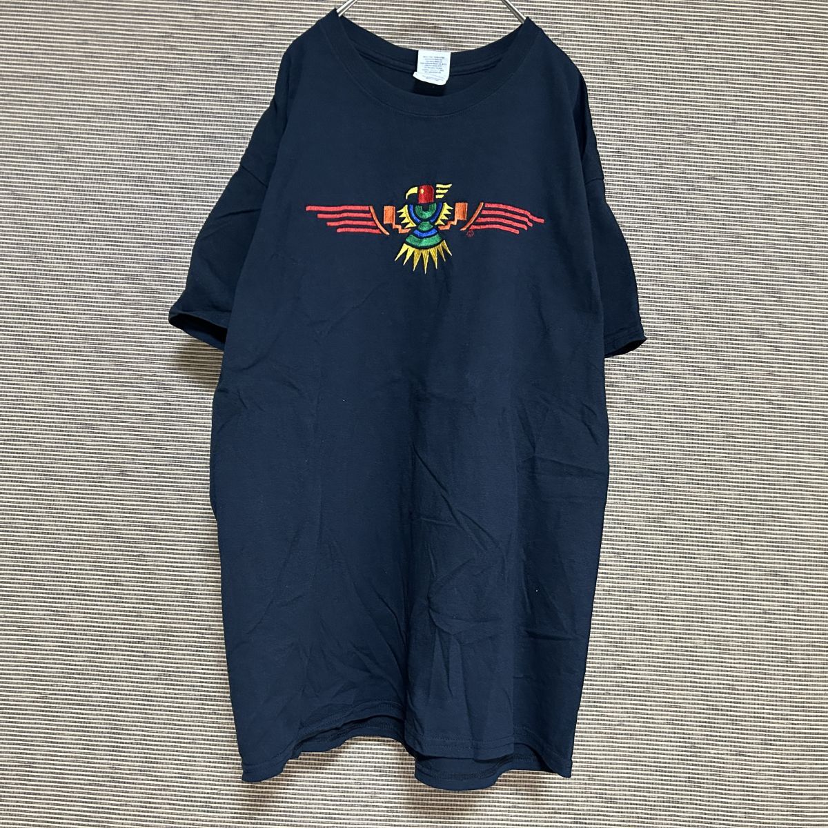 - ギルダン 半袖Tシャツ 刺繍 幾何学 黒 ネイティブアメリカン@9 古着 入手困難 激レア 希少 人気 ブラックネイビー 原住民