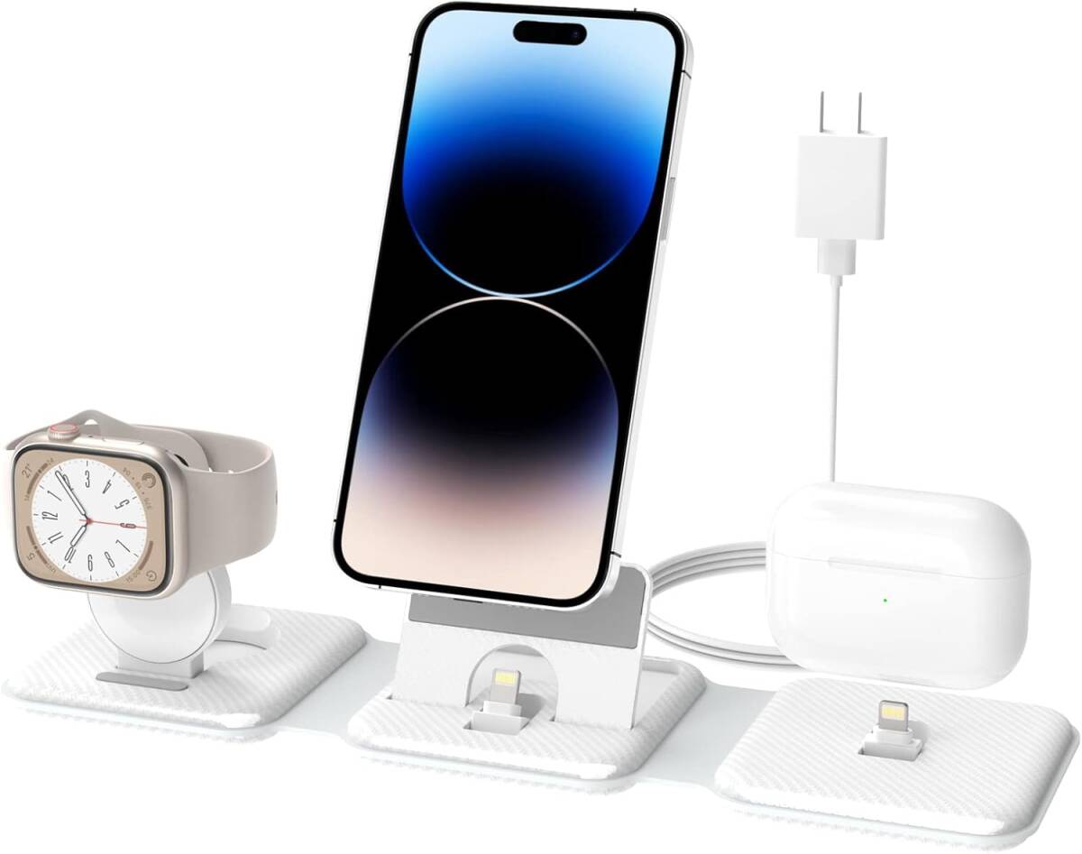 - COCIVIVRE 3in1 充電スタンド アップルウォッチ 充電器 折りたたみ Compatible iphone 同時充電 置くだけ充電器 アダプター付属(ホワイト)