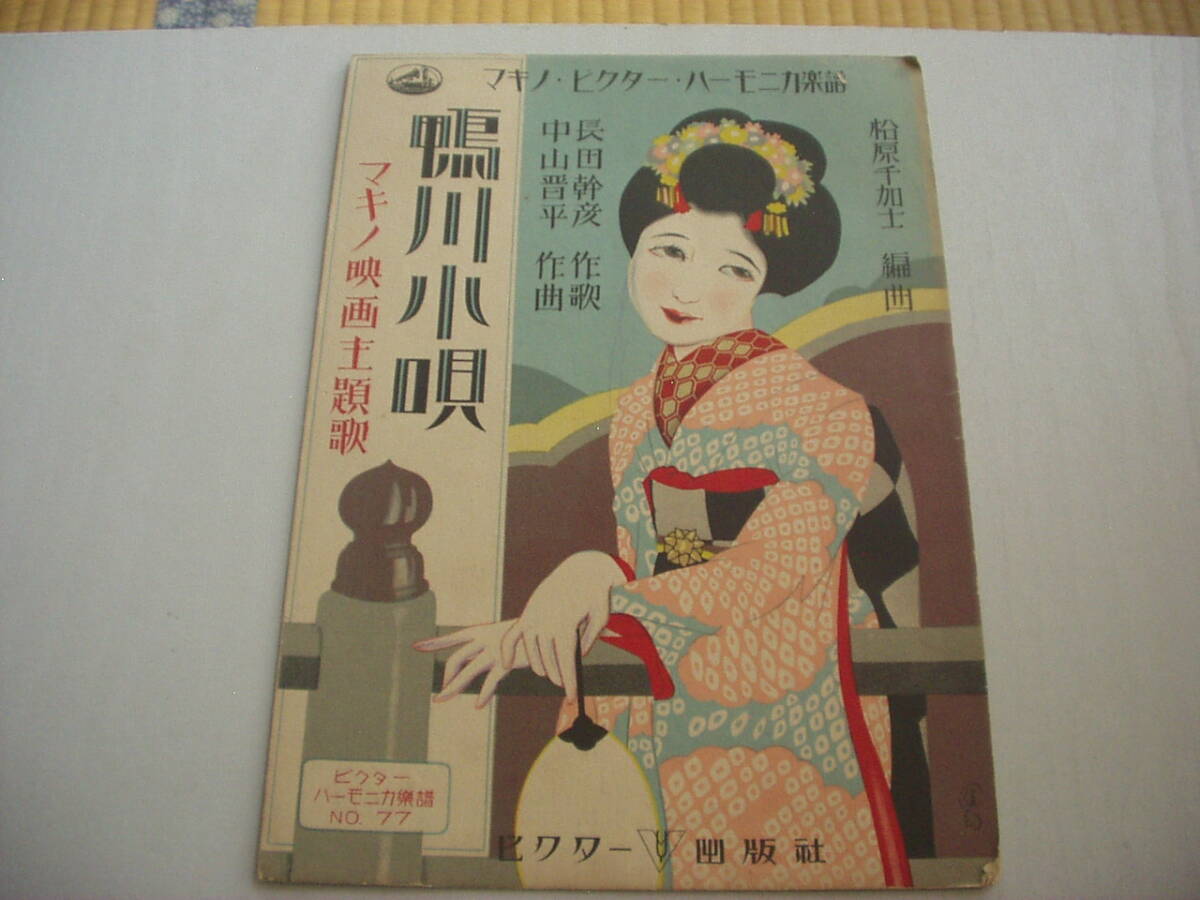 - 鴨川小唄 マキノ映画主題歌 松原千加士 長田幹彦 中山晋平 ビクター・ハーモニカ楽譜 No.77 昭和5年