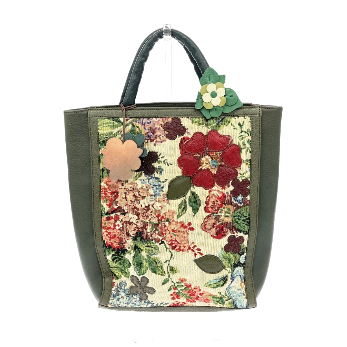 - ◆IBIZA イビサ ハンドバッグ◆ グリーン ゴブラン×レザー×メッシュ レディース bag 鞄