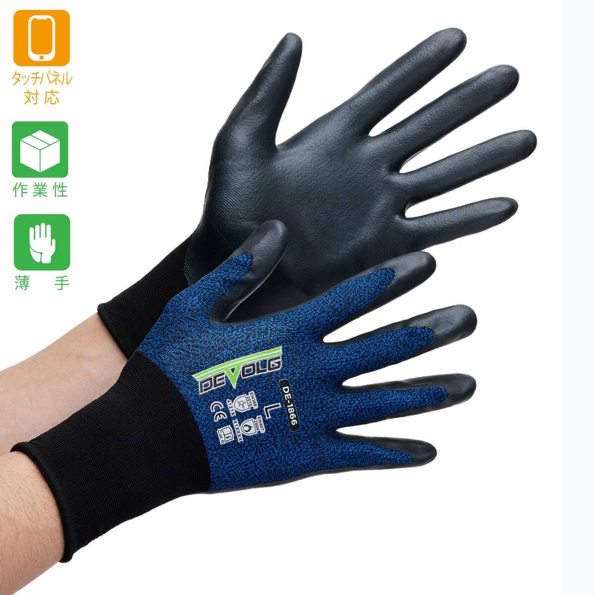 - 40双セット 作業用手袋 タッチパネル対応 物流運搬作業 極薄手18ゲージ 軽作業 ニトリル LLサイズ DEVOLG DE-1866 (10双入り)X4袋 管TN060