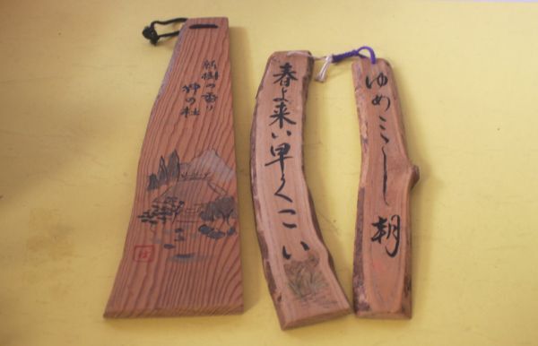 - 木製の短冊(たんざく)木片の飾り 壁飾り 3枚まとめて 願い事 木の板/26N6.19-72