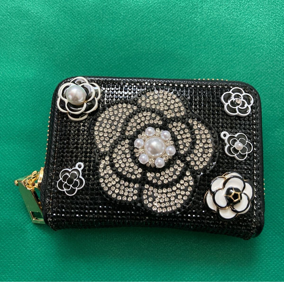 - 新品 Cat Allamanda カードケース ブラック ラインストーン フラワーモチーフ ビジュー