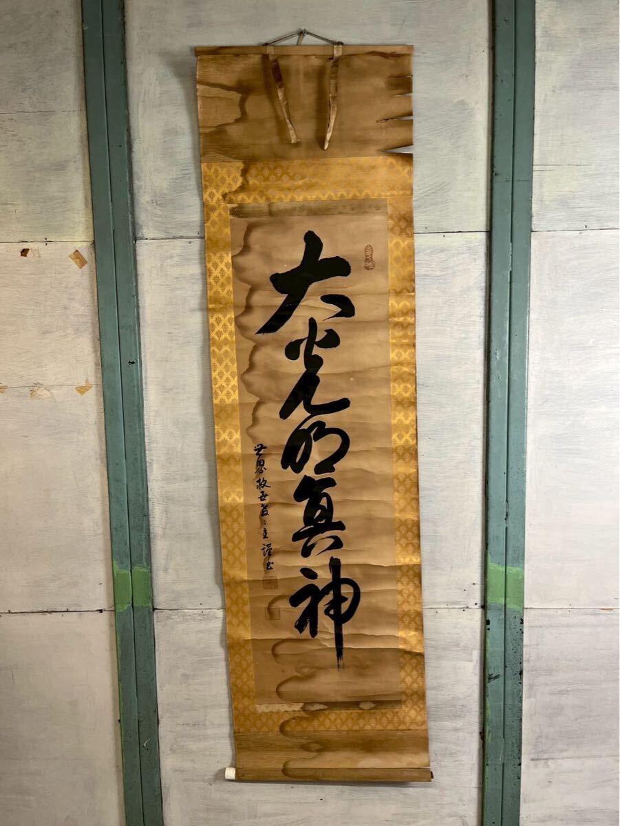 - 工芸 掛軸 世界救世教 教祖 岡田茂吉 『 大光明真神 』 紙本 一行書 印刷