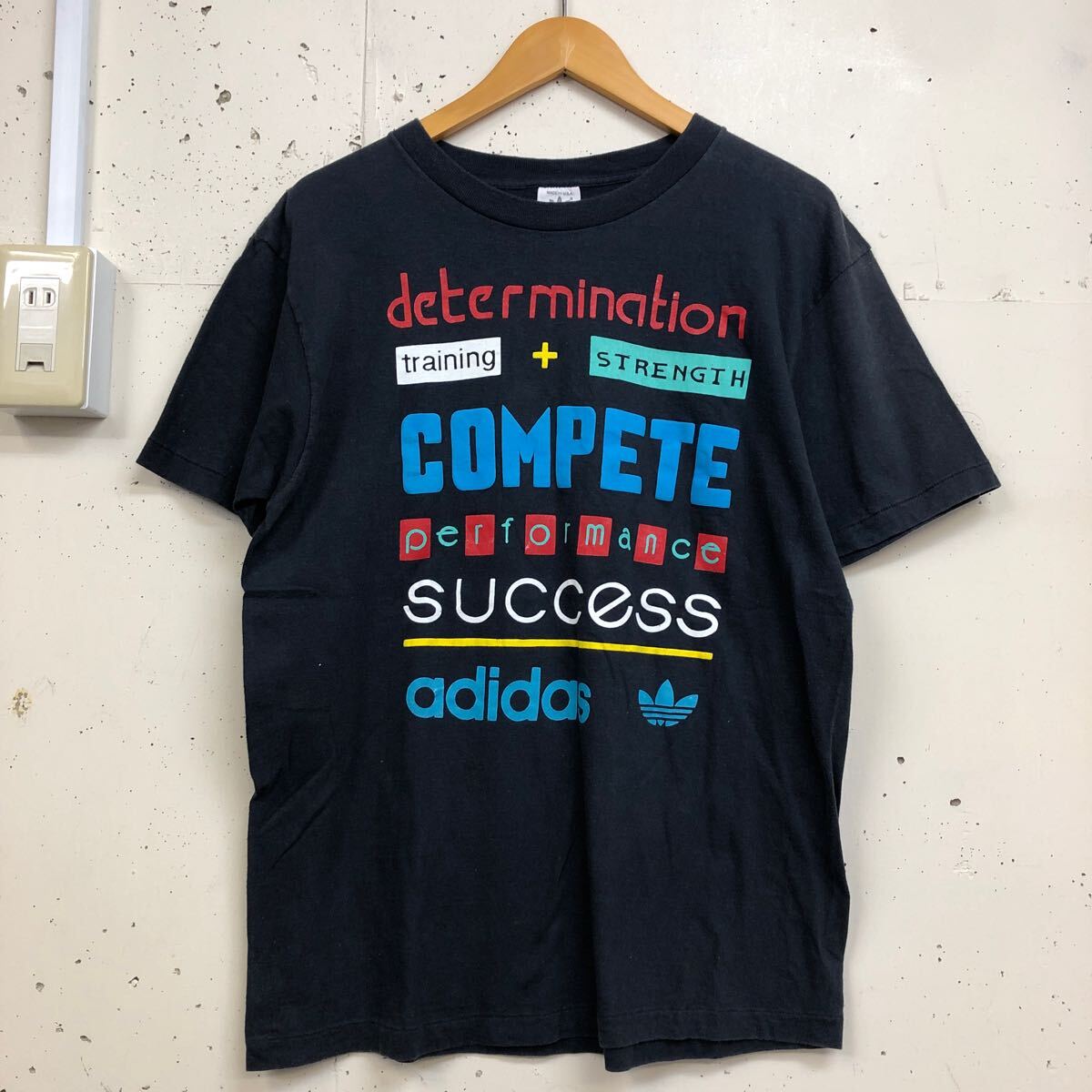 > 80s 80年代 adidas アディダス USA製 サイズM 黒 ブラック 半袖 Tee tシャツ メンズ コットン