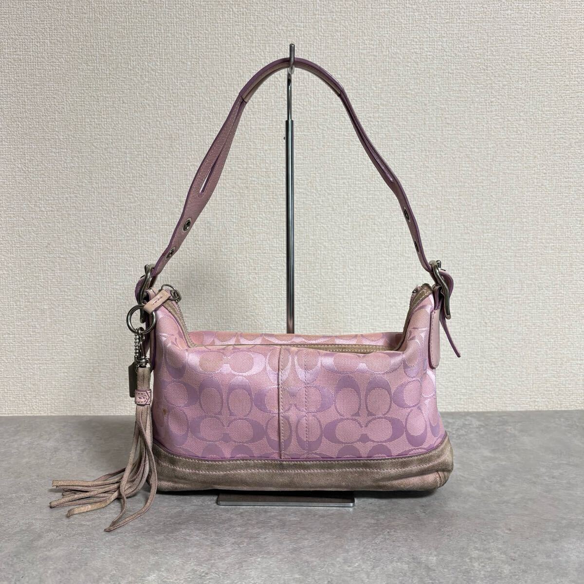 - コーチ シグネチャー ワンショルダーバッグ ピンク COACH signature pink 9363 肩掛け スエード レザー レディース