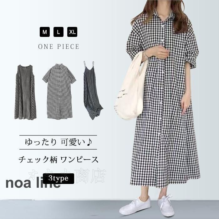 - チェック柄 ワンピース ギンガムチェック ロング 3type ワンピ 半袖 ノースリーブ タンクトップ キャミワンピ キャミソール ゆっ