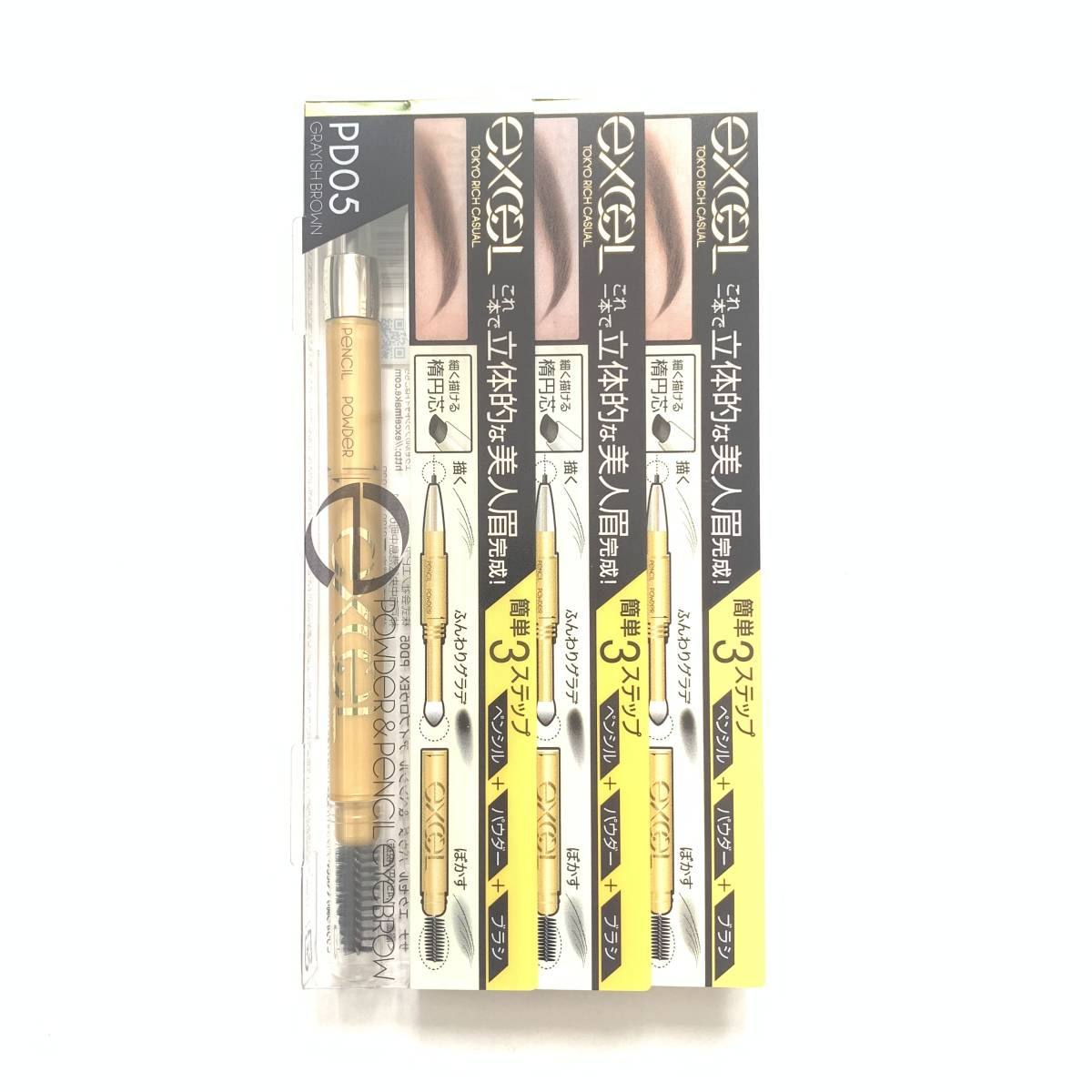- 新品 即決 ◆サナ エクセル パウダー&ペンシル アイブロウEX PD05 グレイッシュブラウン (眉墨) 3本セット売り◆ excel 定価4785円相当
