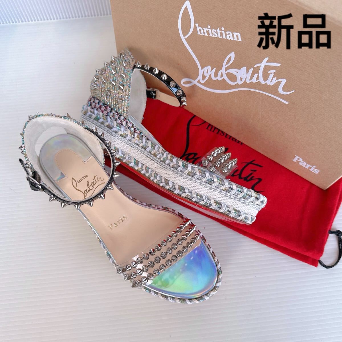 > Christian Louboutin クリスチャンルブタン 厚底 カタクロウ ストラップ サンダル スタッズ フラットシューズ レーディス 靴 35 オーロラ