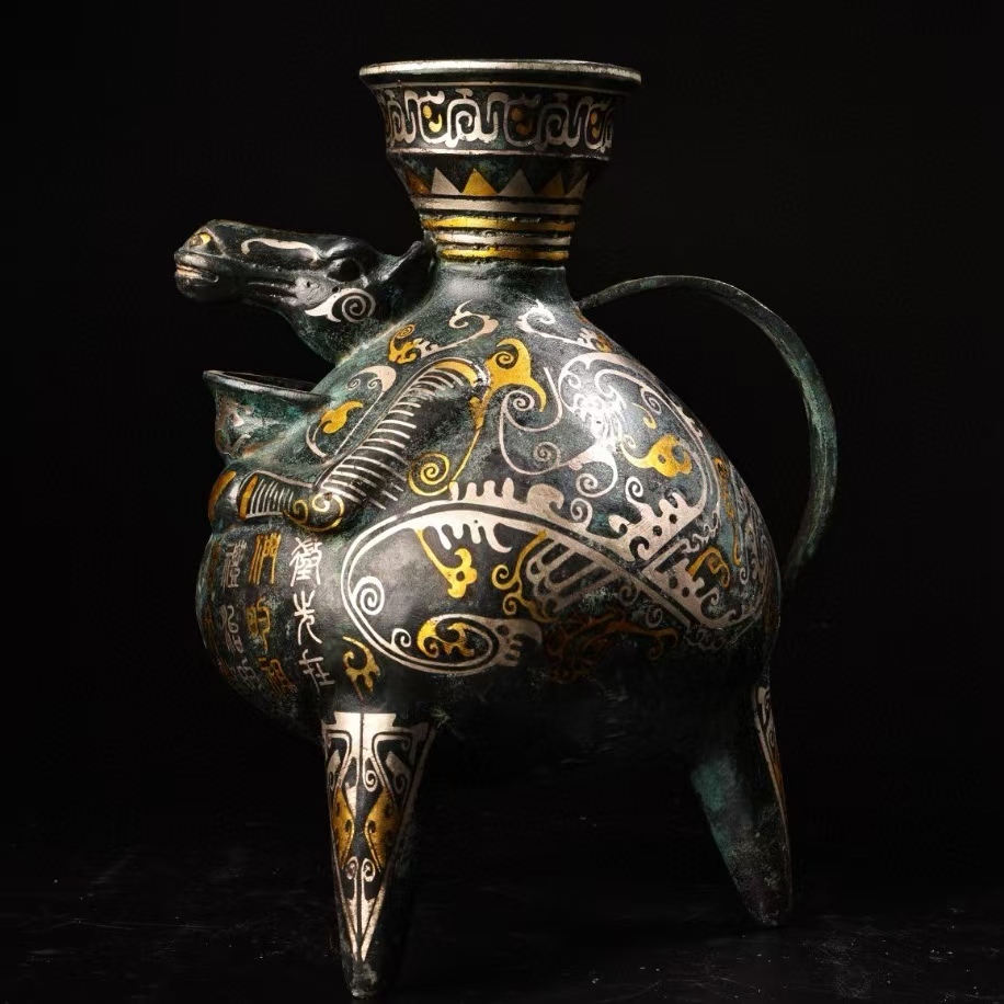 - 商周時代 錯金銀 青銅器 馬頭壺 古寺 銅製 銅琉金 唐物 收蔵品 時代物 古美術 古置物 希少珍品 供養品 文房具 仏教6.30