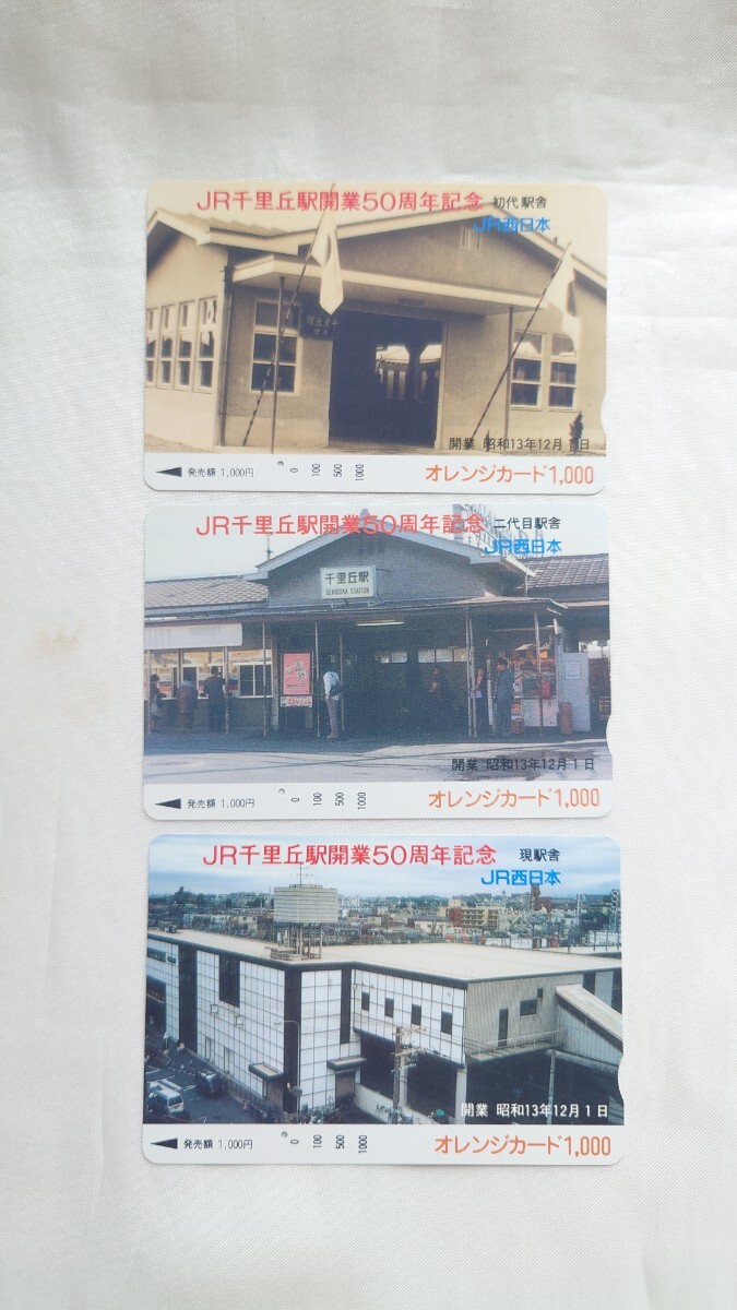 - ★JR西日本★JR千里丘駅開業50周年記念全3種★記念オレンジカード1穴使用済み3枚一括