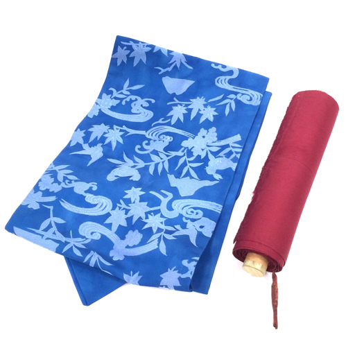 - 名古屋帯 紅葉 デザイン ブルー系 他 反物 ボルドー系 含 着物関連用品 計2点 セット 現状品 QG071-40