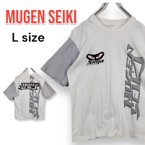 > 【レア】MUGEN SEIKI 無限精機 NINJA エンジン Tシャツ 2トーン ニンジャ 白 灰 Lサイズ ラジコン