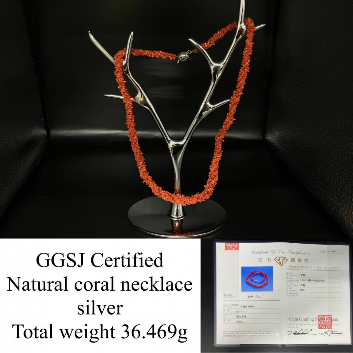 > 赤珊瑚 ネックレス (さんご サンゴ) 宝石鑑別書付き GSILVER 総重量36.469g ネックレス全長約59.5cm 5609YY