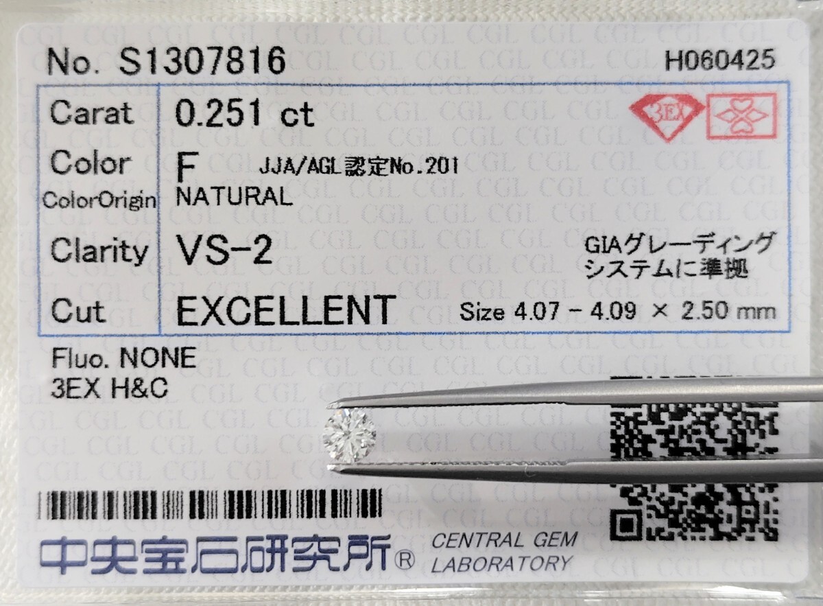 - 【12/12(金)】天然ダイヤモンド ルース 0.251ct F VS2 鑑別 CGL│A4448lzr 【EX up】 ダイヤ diamond