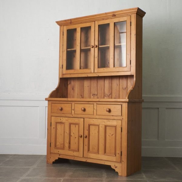 > IZ93472N★カントリー スタイル パイン 無垢材 食器棚 キャビネット キッチンボード 揺れガラス カップボード 収納棚 本棚 クラシック 木製