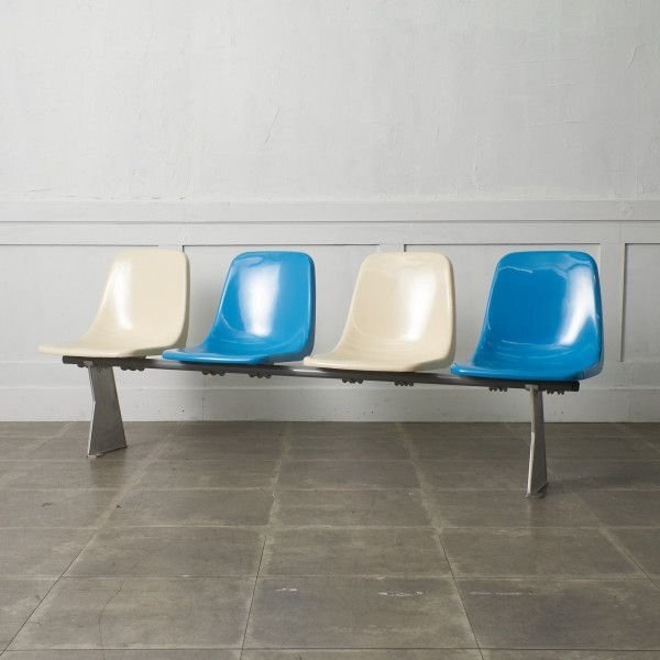 - IZ93387F★MOLYMER KINKI スタジアム ベンチ KF-13/16 競技場 野球場 モリマーキンキ 椅子 4席 4人掛け チェア 公共 シェル チェア モダン