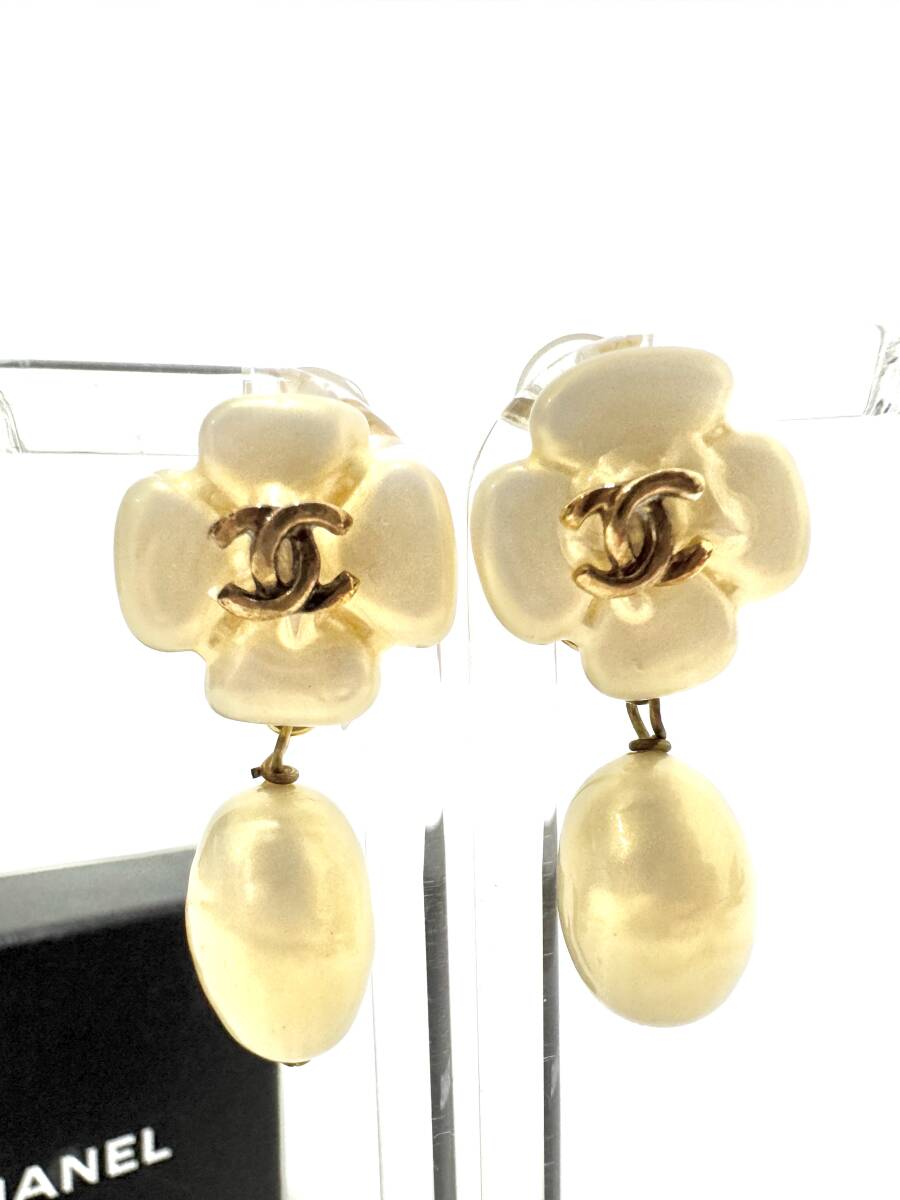 > 7F2914【本物保証】シャネル イヤリング スイング フェイク パール カメリア フラワー ココマーク ゴールド 98C CHANEL