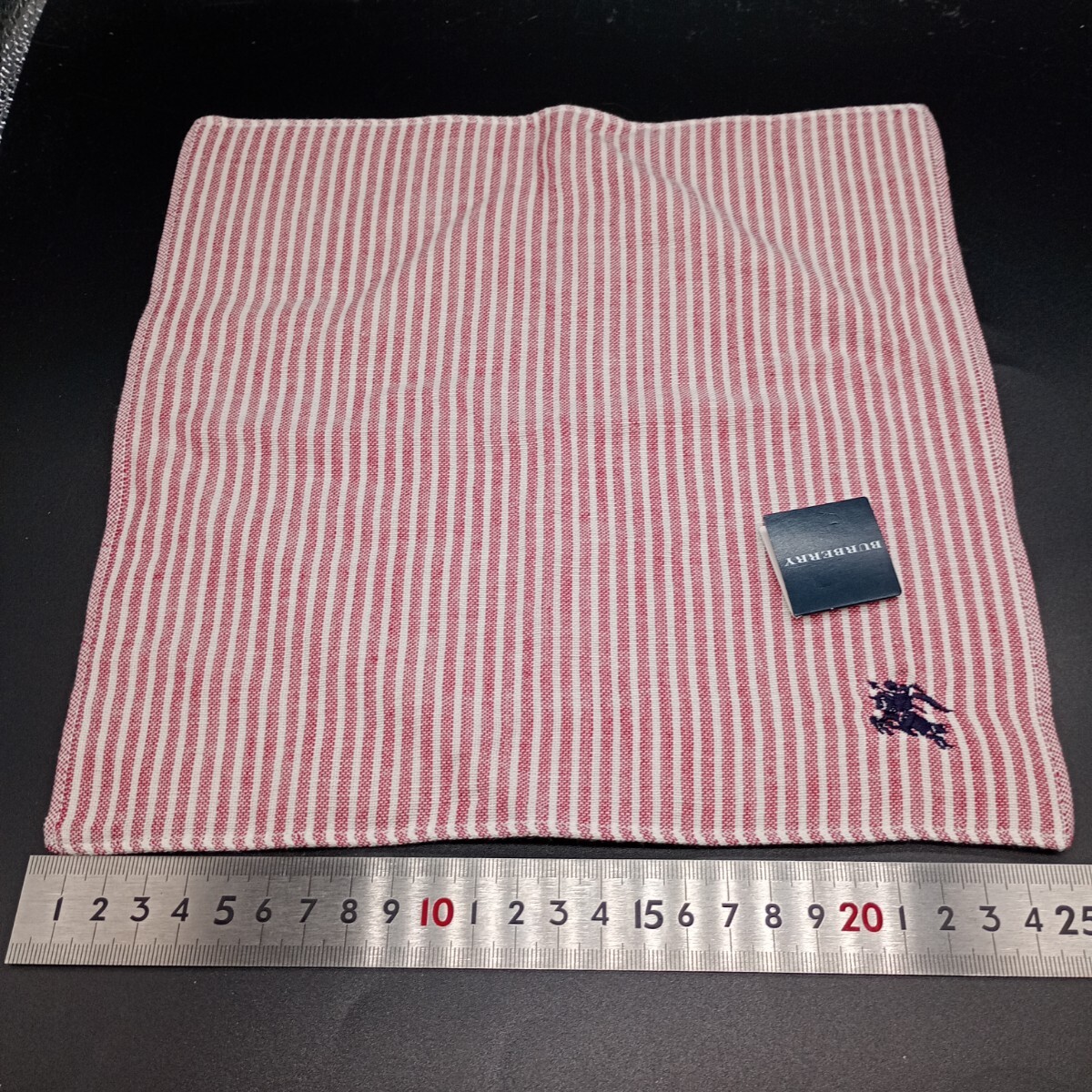 - BURBERRY バーバリー タオルハンカチ レッドストライプ ネイビー・ホースマーク刺繍 no.3021