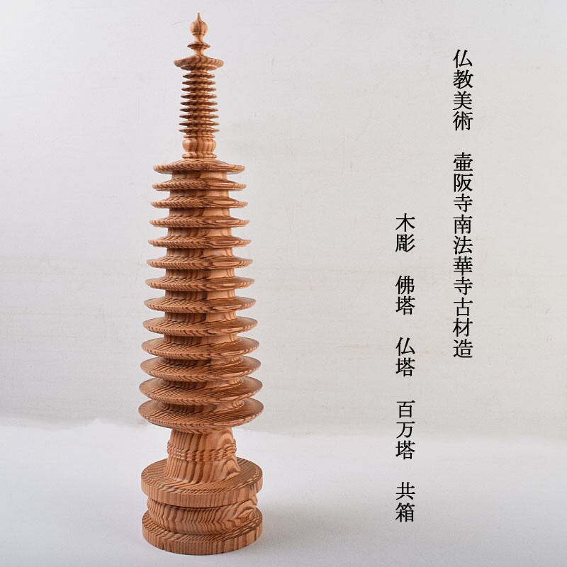 - 仏教美術 壷阪寺南法華寺古材造 木彫 佛塔 仏塔 百万塔 共箱 VQSR