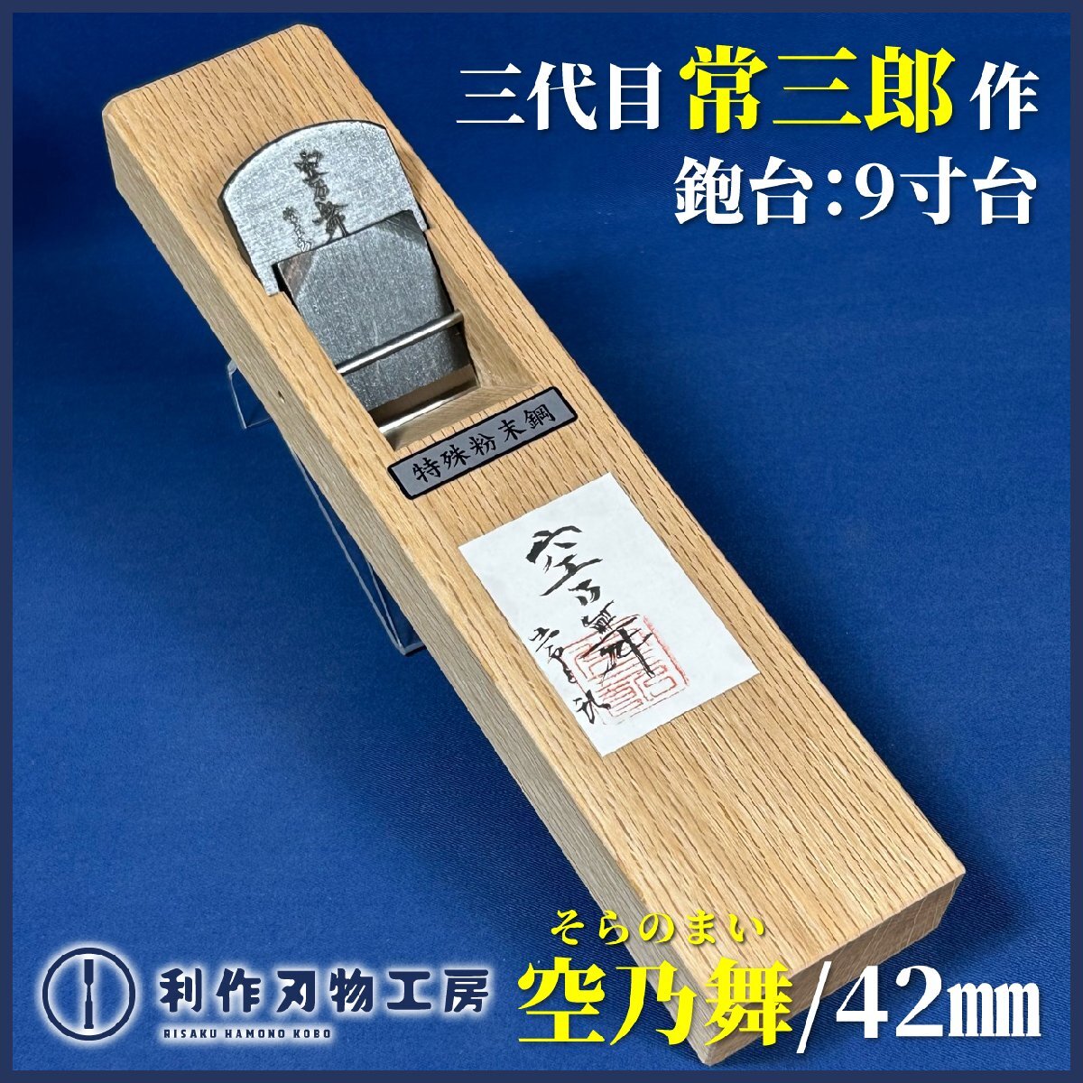 > 【三代目常三郎作】空乃舞(そらのまい) 豆平鉋 寸4/42㎜『材質:特殊粉末鋼 長台/9寸台仕様 常三郎×利作刃物工房コラボ