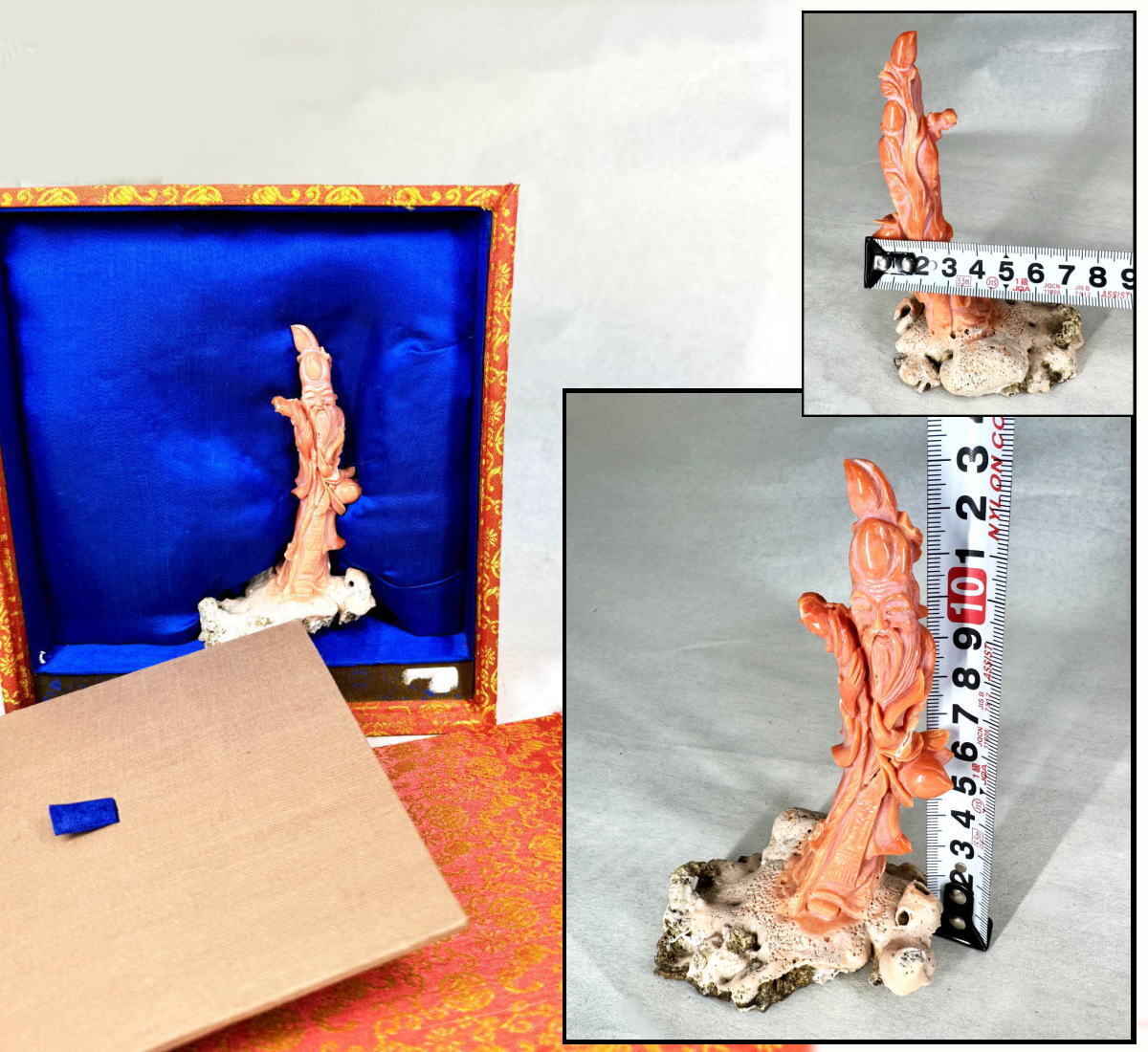 - 【送料無料】天然深海赤珊瑚 手彫り壽老人 縁起置物 天然未着色サンゴ ジュエリー 宝石 原木 オブジェ 入手困難 骨董 (旧家蔵出し) WWFT030
