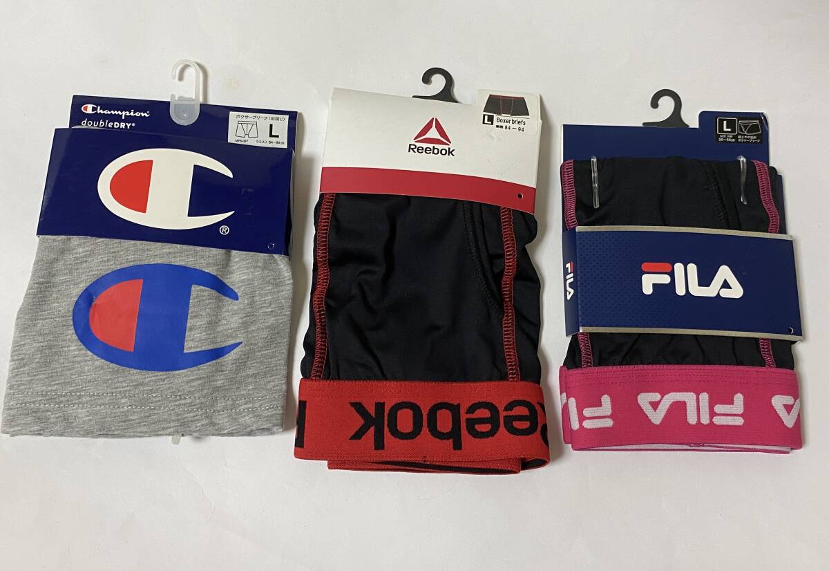 > Champion チャンピオン / Reebok リーボック / FILA フィラ ボクサーブリーフ Lサイズ 84-94㎝ 計3点セット 展示未使用品