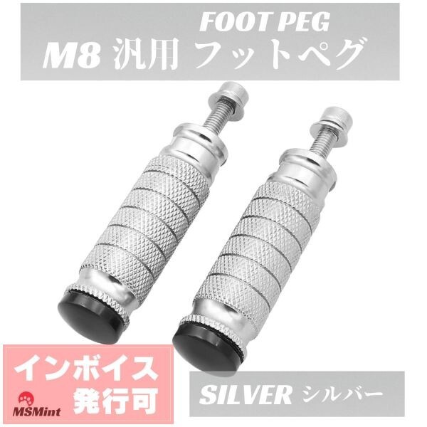 > Y161 フットペグ ステップ M8 バイク シルバー ペダル フロントフットレスト バックステップ タンデムステップ 左右セット 汎用