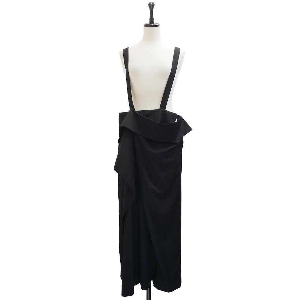 > LIMI feu 2020ss ウールギャバ 吊り下げ ラップ パンツ ドレス 20ss リミフゥ ウールギャバジン スカート オーバーオール ワンピース