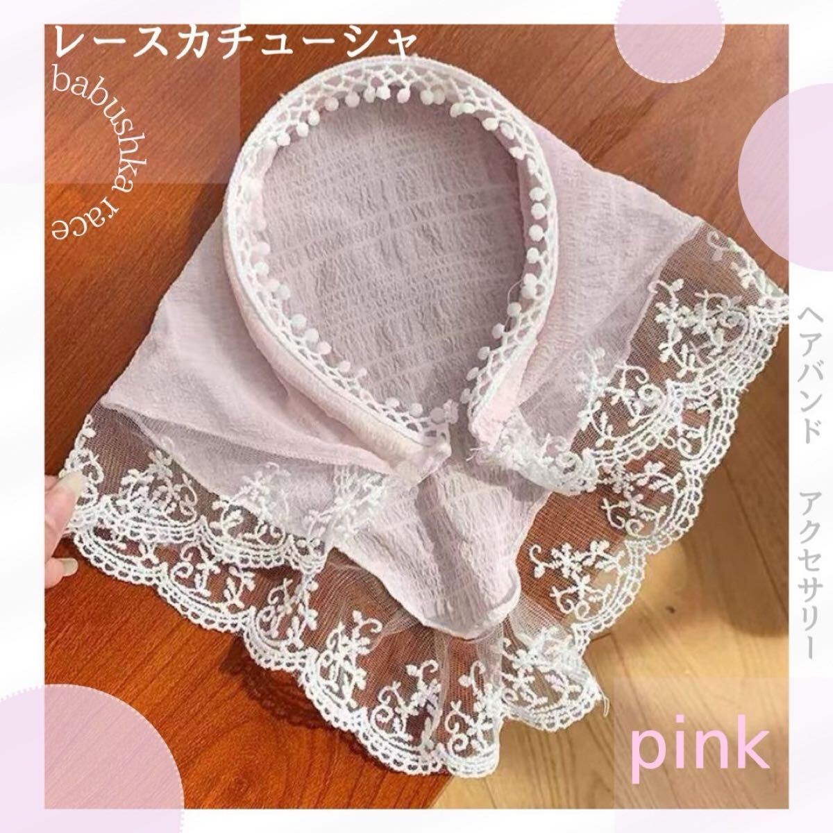 - 新品!レース カチューシャ ピンク バブーシュカ 韓国 ヘアアクセサリー 刺繍