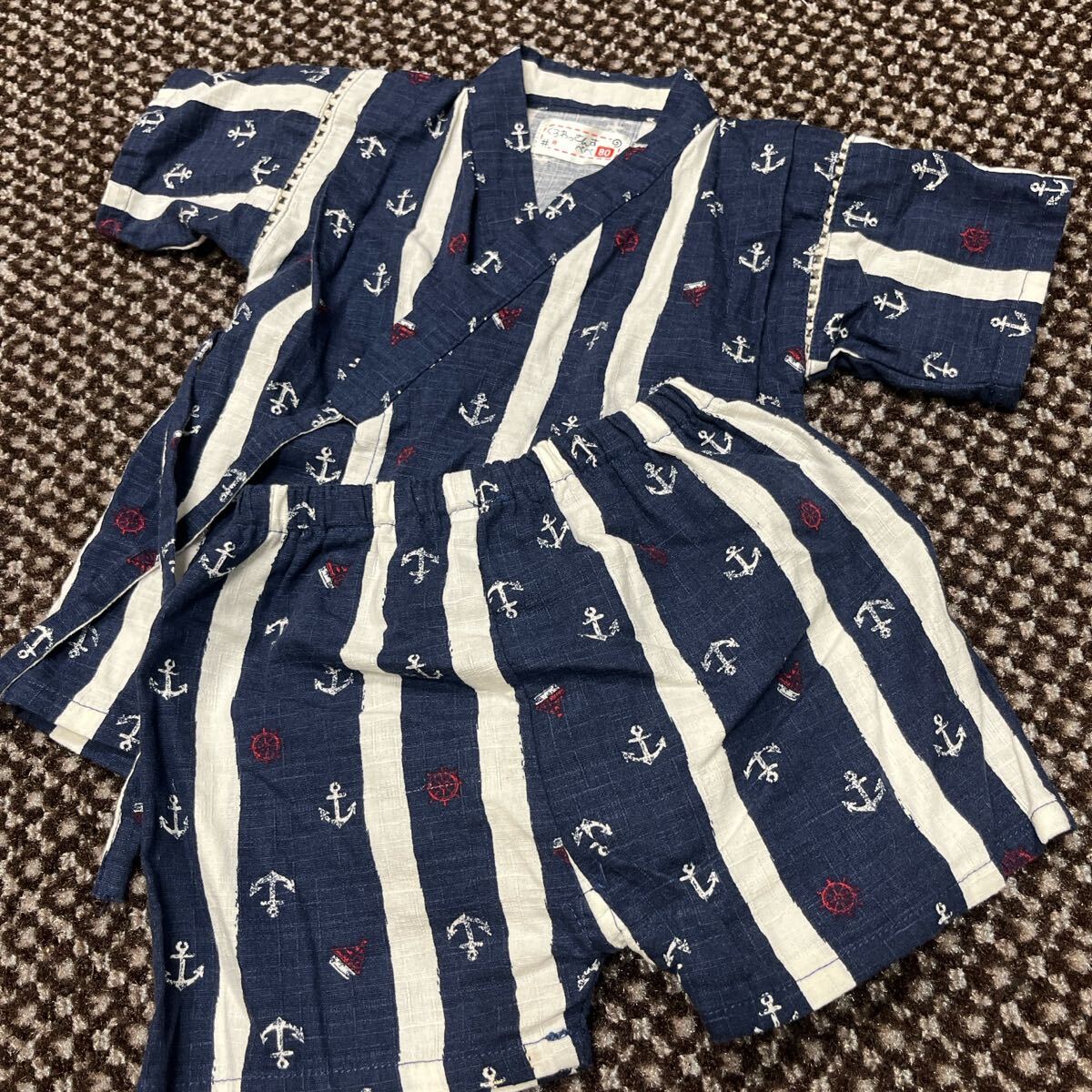 - いかり柄 くろわっさんすべべ 甚平80★美品