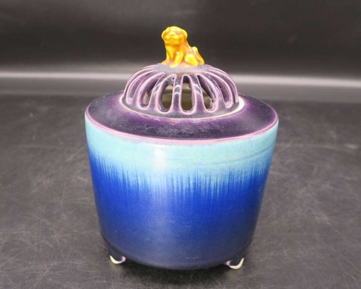 - 【瑠璃釉香炉/紫と黄色の見事なコントラスト/徳田八十吉】