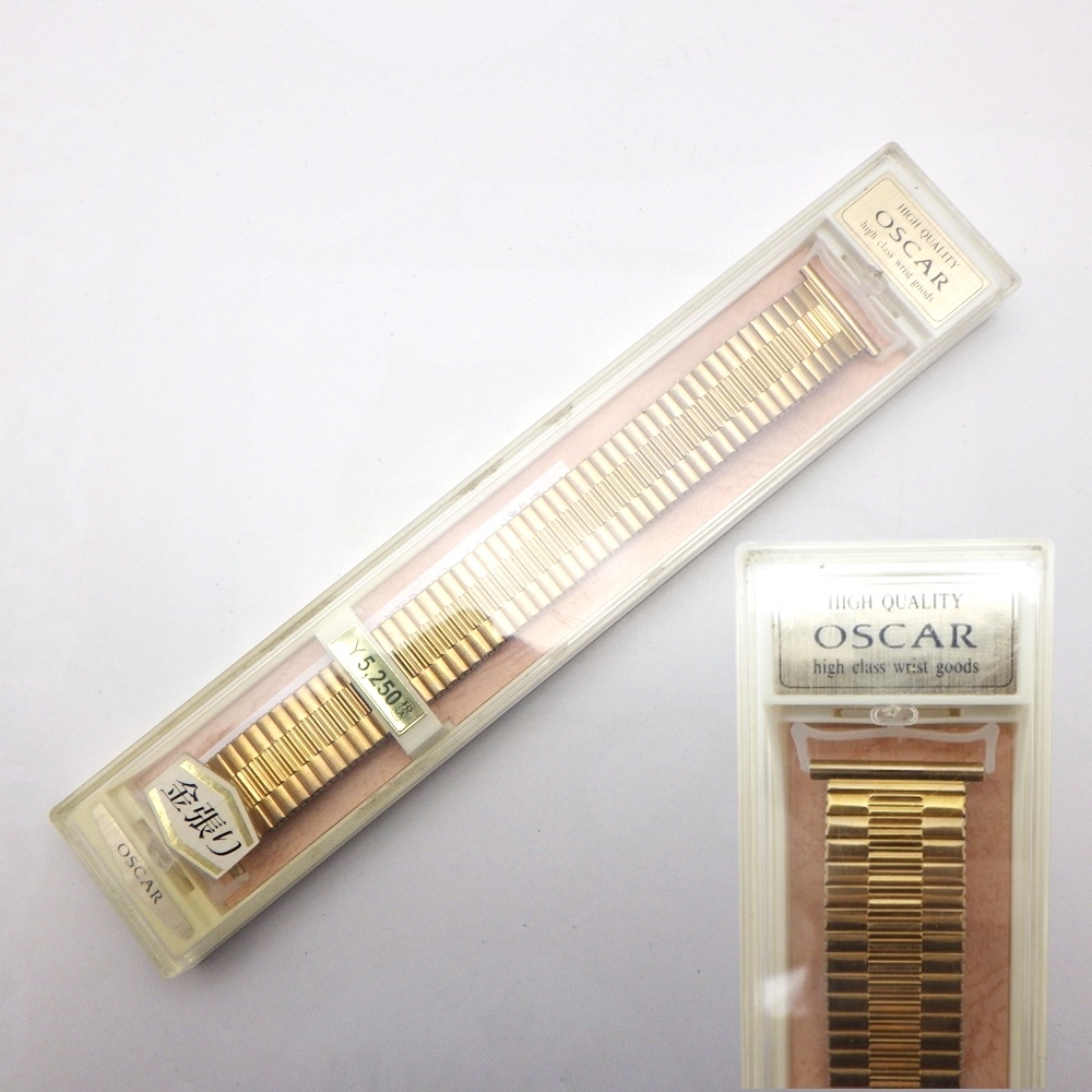 > 25-H-117【未使用】Bambi バンビ オスカー 腕時計ベルト 伸縮バンド 22-17mm ゴールド 金メッキ K12GF ケースつき デッドストック